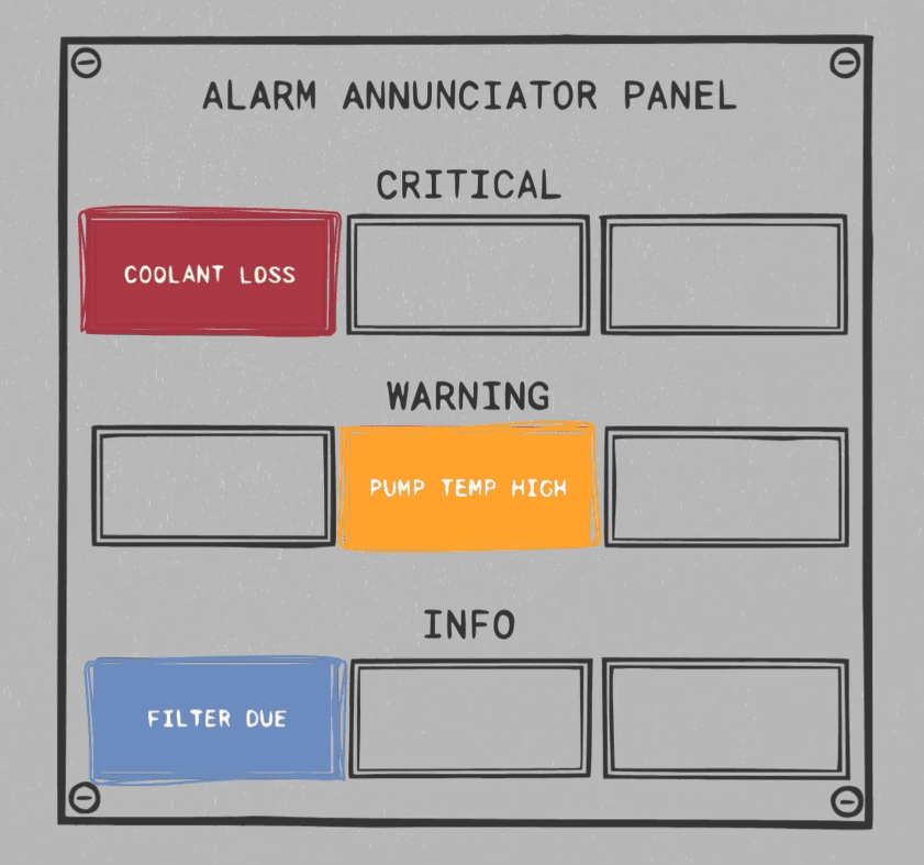 Ideally, critical alarms should stand out, either visually, audibly, or both, so that operators can identify and prioritize what's most urgent. At Three Mile Island, however, every one of those 750 alarms looked and sounded the same, making it impossible to distinguish (and, in turn, prioritize) between alarms indicating life-threatening failures and minor deviations.