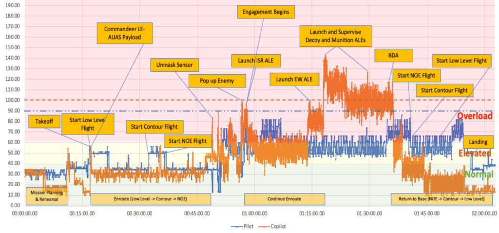 Leveraging the Improved Performance Research Integration Tool (IMPRINT), we built mission models and evaluated the mental workload of two-person and single-person rotorcraft crews conducting attack and reconnaissance missions. We assessed current world and envisioned world settings in which FARA operators commanded a range of unmanned aircraft (different types including class II and III as well as ALEs). We explored the use of advanced automation, artificial intelligence, and decision aiding technologies to support operators in managing periods of excessive workload. IMPRINT models provided visualizations highlighting the impact of different crew-automation configurations on workload in the context of attack and reconnaissance missions.